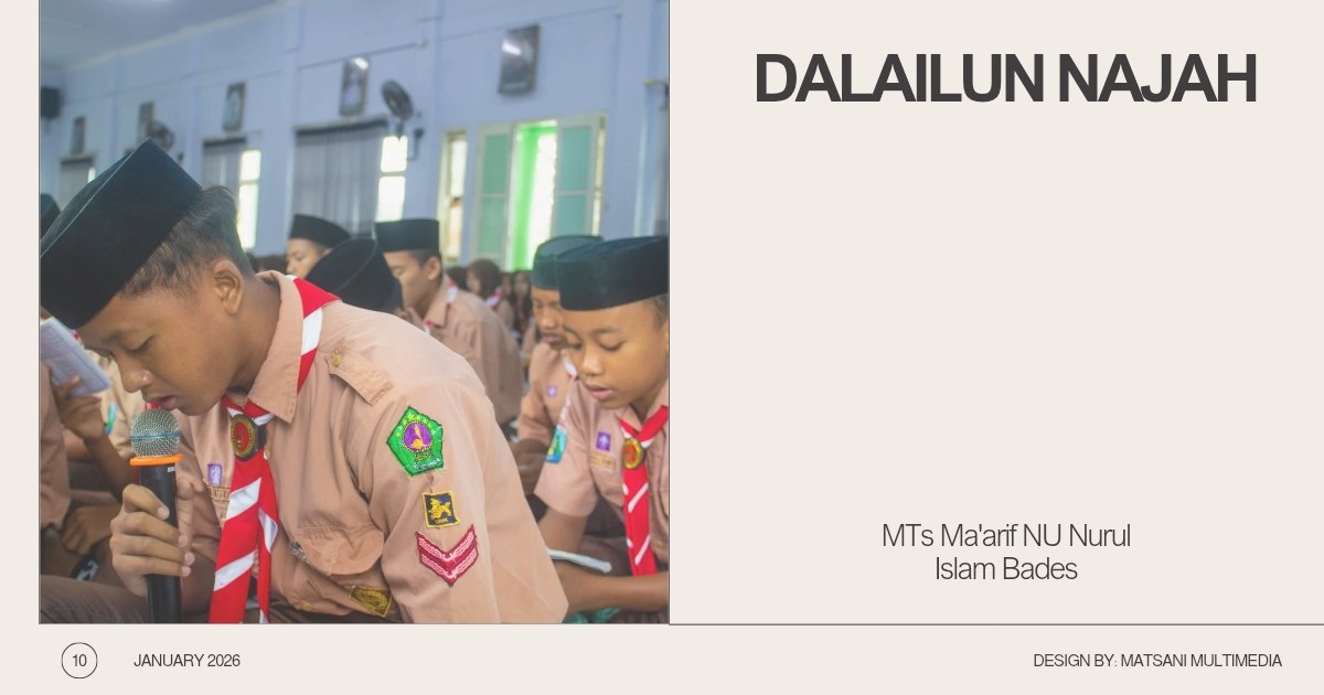BADES, 10 Januari 2026 — MTs NU Nurul Islam Bades konsisten melaksanakan kegiatan Dalailun Najah setiap Sabtu pagi. Bertempat di aula madrasah, kegiatan kerohanian ini diikuti oleh seluruh siswa serta dewan ustaz dan ustazah.
