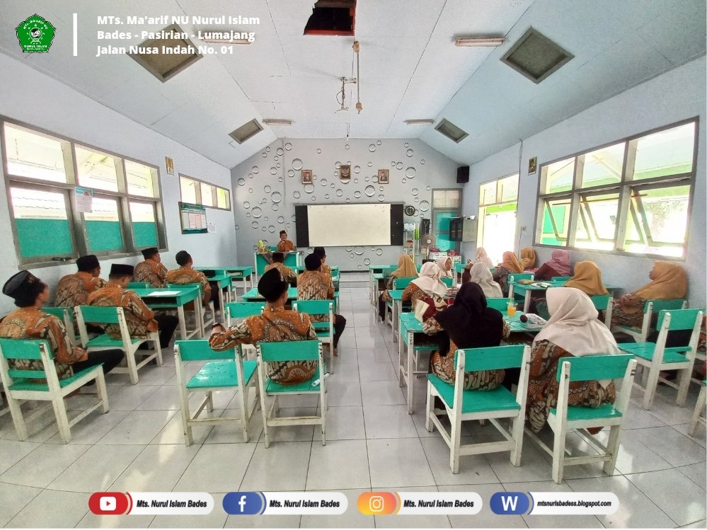 Pasirian - Madrasah Tsanawiyah Ma'arif NU Nurul Islam Bades melaksanakan rapat bulanan untuk seluruh Tendik/Pendik yang dilaksanakan di Kelas VIIIC. Rapat bulanan ini dilaksanakan untuk meningkatkan kebersamaan warga madrasag dan mengevaluasi kegaiatan yang sudah terlaksana dan persiapan kegiatan yang akan dilaksanakan selama bulan Nopember ini. Rabu, (06/11/2024)