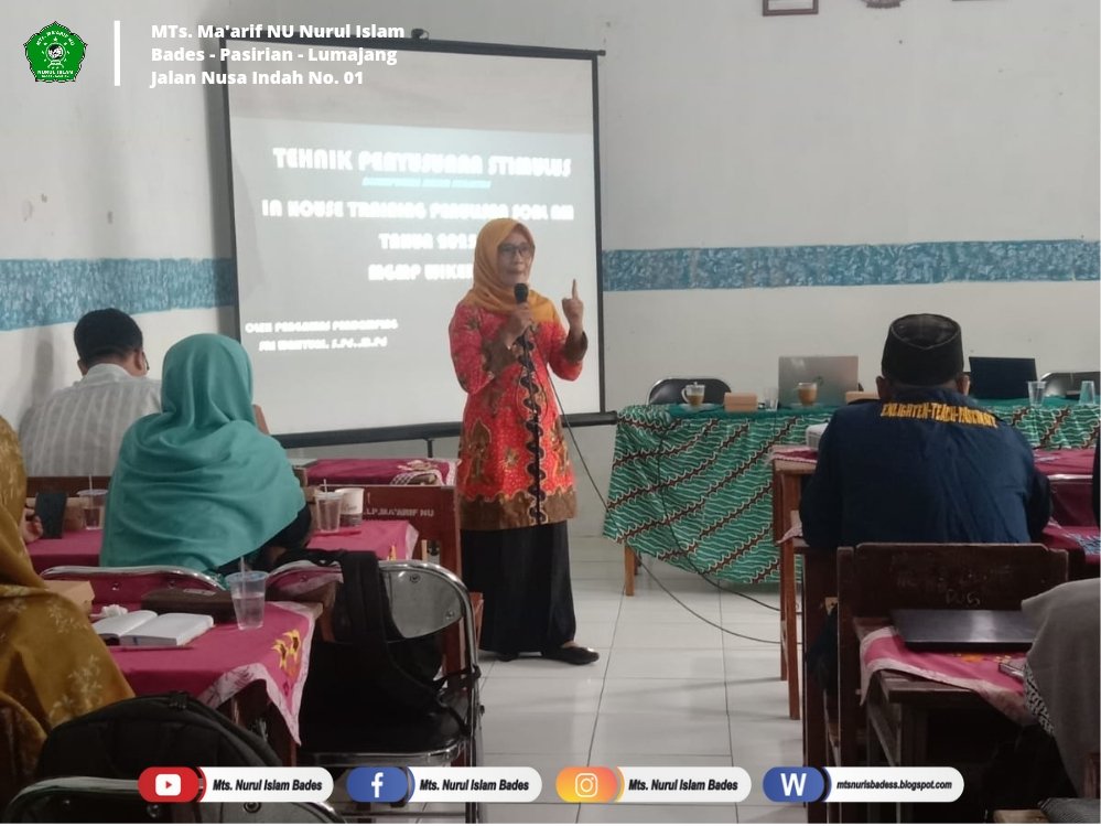 Kegiatan In House Training (IHT) ini bertujuan untuk meningkatkan kompetensi guru yang ada diwilayah kerja KKMTs di Wilayah Kerja (Wilker) 4 dalam menyusun soal yang baik dan benar. Materi yang disampaikan meliputi teknik penyusunan soal, teknik penyusunan stimulus, dan teknik penyusunan kisi-kisi soal serta telaah soal.