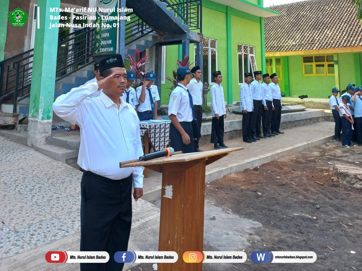 Pasirian - Setiap hari Senin Madrasah Tsanawiyah Ma'arif NU Nurul Islam Bades menggelar upacara rutin yang diikuti oleh Kepala Madrasah, PKM, seluruh Ustad/ustadzah beserta Staff dan siswa-siswi. Kegiatan tersebut dilaksanakan di Halaman Madrasah. Kegiatan ini dilaksanakan untuk memupuk cinta tanah air dan kedisipliman untuk seluruh warga Madrasah. Senin (09/10/2033).