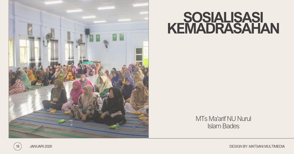 MTs Nurul Islam Bades menggelar kegiatan sosialisasi kemadrasahan pada Ahad, 18 Januari 2026. Kegiatan yang berlangsung di Gedung Aula MTs Nurul Islam Bades inidihadiri oleh wali murid kelas VII, VIII, dan IX. Sosialisasi tersebut mengusung tema “Meneladani Adab, Menjemput Berkah: Sosialisasi Tata Tertib demi Mewujudkan GenerasiBerakhlakul Karimah.”