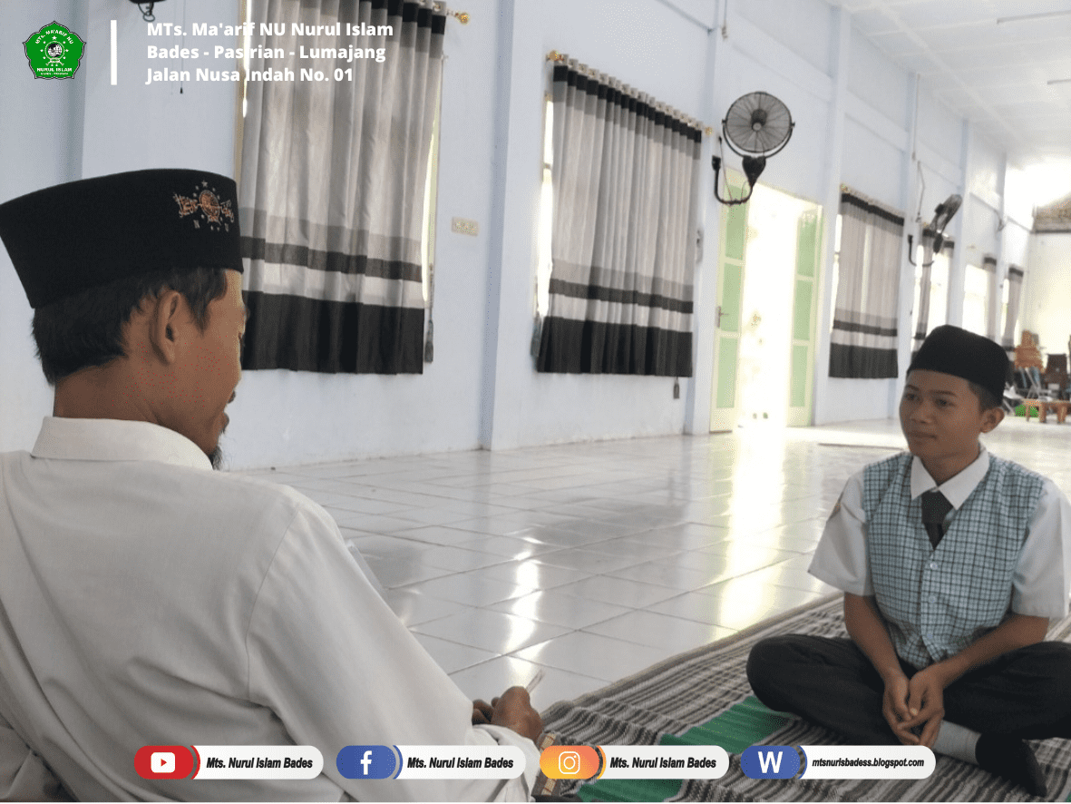 Pasirian - Organisasi Siswa Intra Madrasah (OSIM) melaksanakan kegiatan tes wawancara yang digelar langsung pada Aula Madrasah, kegiatan ini berlangsung pada hari Senin, 30 Oktober 2023. Penguji Tes Wawancara ini adalah pembina organisasi siswa intra madrasah (OSIM) MTs. Ma'arif NU Nurul Islam Bades yakni Ustadzah Maria Ulfa S.Pd dan Ustadz Malik Lutfi S.HI. Tes Wawancara diikuti oleh calon pengurus OSIM yang telah berhasil lolos dari Tes Tulis yang berjumlah kurang lebih 75 siswa di MTs. Ma'arif NU Nurul Islam Bades yang dilaksanakan pada hari Sabtu kemarin, Tes ini diawali dengan rasa kepekaannya terhadap sekitarnya, panitia meletakkan beberapa sampah dijalan yang dilewati calon pengurus Osim baru, sayangnya hanya beberapa yang memperhatikan sekelilingnya, kemudian calon pengurus Osim baru akan menerima pertanyaan dari ustadz Malik dan ustadzah Maria, beberapa pertanyaan nya antara lain "kenapa kamu ingin menjadi pengurus Osim??", "siapkah kamu jika menjadi ketua OSIM??".