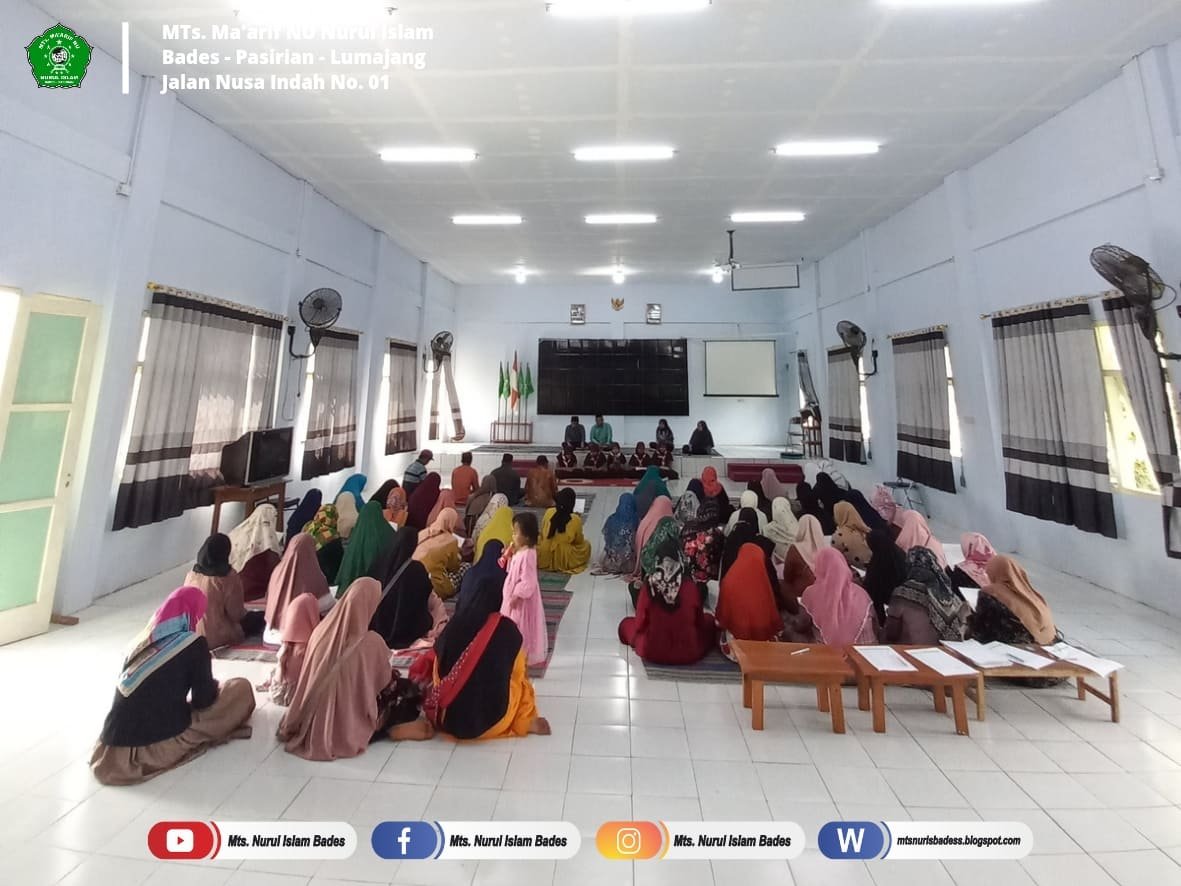 Minggu, (08/10/2023). Melalui Program Kerja dari PKM Humas Madrasah Tsanawiyah Ma'arif NU Nurul Islam Bades melaksanakan kegiatan rutinan untuk wali murid kelas VII yakni doa bersama dan kemadrasahan. Kegiatan ini diikuti oleh PKM Humas, Wali kelas VII ABCD dan seluruh wali murid kelas VII ABCD. Untuk kesempatan kali ini yang menjadi petugas dalam acara tersebut adalah perwakilan dari kelas VIIC, adapun tugasnya adalah: Mc, Tawassul, Tahlil, Istitabah, dan Doa.