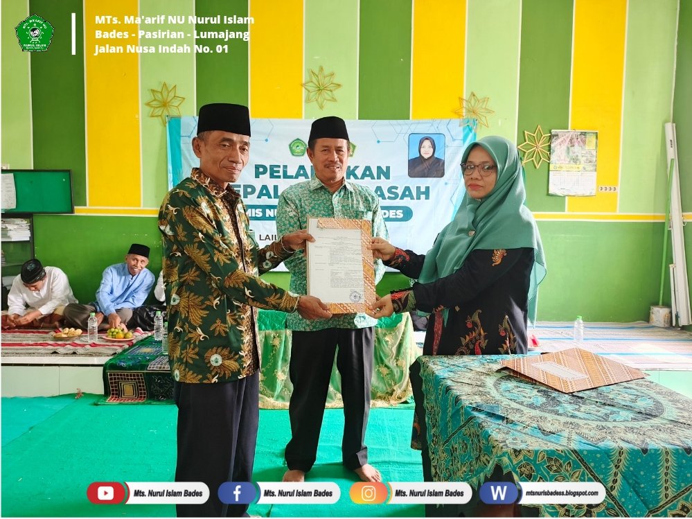 Pasirian - Madrasah Tsanawiyah Ma'arif NU Nurul Islam Bades mengikuti pelaksanaan Pelantikan Kepala Madrasah di MIS Nurul Islam 02 Bades. Kegiatan ini diikuti oleh seluruh warga madrasah Nurul Islam 01-02 Bades, BP3MNU, Komite Madrasah, dan Yayasan. Dalam hal ini yang dilantik oleh LP Ma'arif NU sebagai Kepala Madrasah di MIS Nurul Islam 02 Bades. Pelantikan ini dilaksanakan di Aula MIS Nurul Islam 02 Bades. Ahad, (20/10/2024).